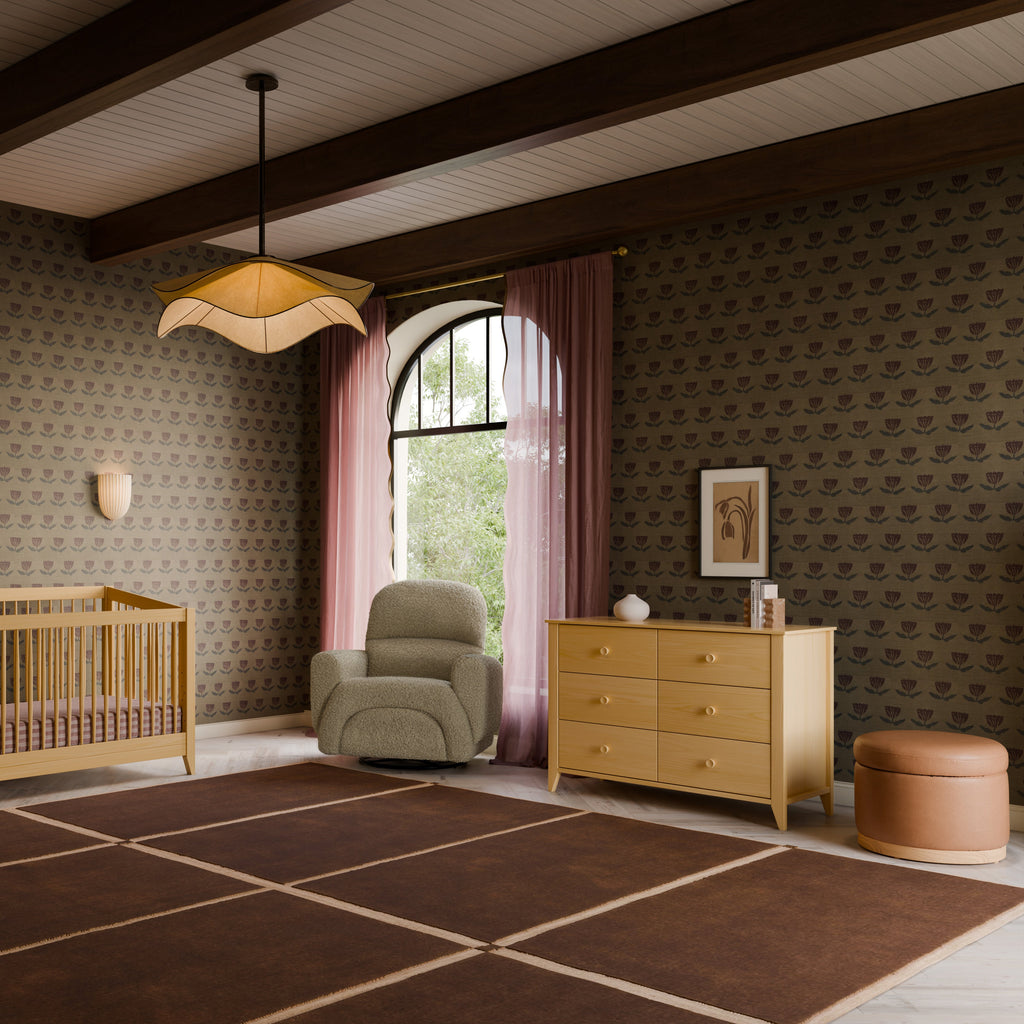 Mid-century modern, meet craftsman charm in the babyletto Sprout 6-Drawer Double Dresser. Versatile in design and function, the Sprout 6-Drawer Dresser seamlessly moves from the nursery to a big kid room with the option to buy a removable changer top. Six spacious, smooth-glide drawers provide ample space for a growing babe’s wardrobe. Pair it with the Sprout 4-in-1 Convertible Crib for a classic mid-century modern nursery.