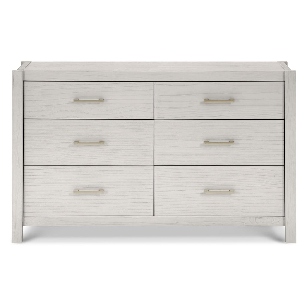 Complete your modern farmhouse nursery with the Hemsted 6-Drawer Dresser, featuring a premium texturized wood finish and elegant gold hardware that enhances the dresser's contemporary flair. Soft-closing, ball-bearing drawer glides make this dresser easy to use.